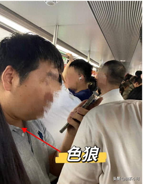 一名女生听到身旁传来不可描述的喘气声时,发现一名男子表情猥琐,用胯部顶另一女生的臀部,并摸其手臂。这让她意识到这名妹子可能遭遇了猥亵。