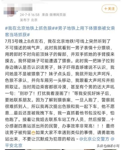 北京地铁发生了一猥亵的事,一名女生发现陌生男子猥亵前面女生后挺身而出,她凭自己一人制止了色狼,还让这个猥琐男绳之以法。