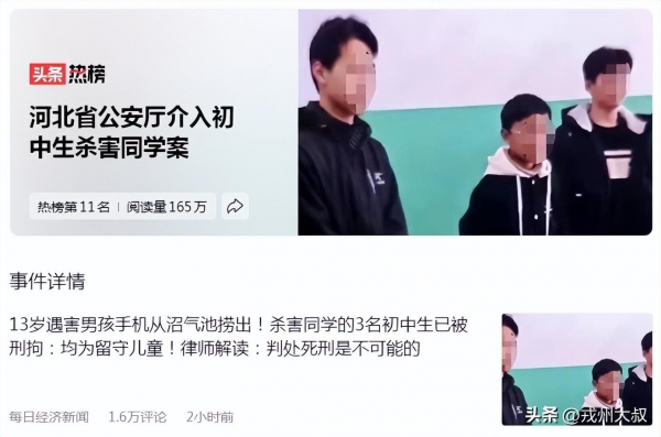 3月10日,邯郸初中生被3名同学杀害掩埋在废弃蔬菜大棚,13岁遇害男孩手机从沼气池捞出!杀害同学的3名初中生已被刑拘,目前河北省公安厅已介入案件调查,律师分析3名未成年人判处死刑是不可能的。