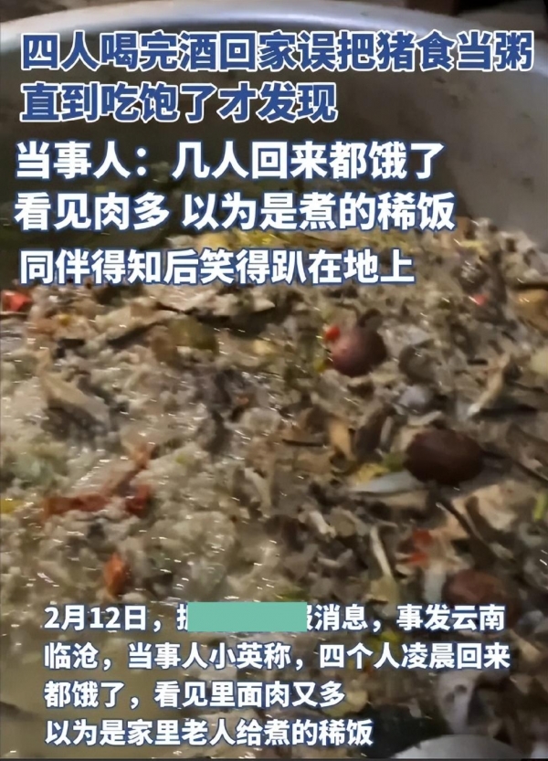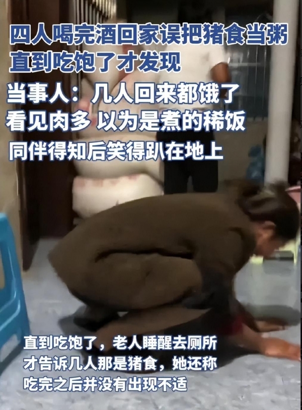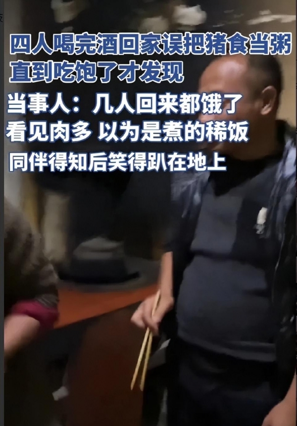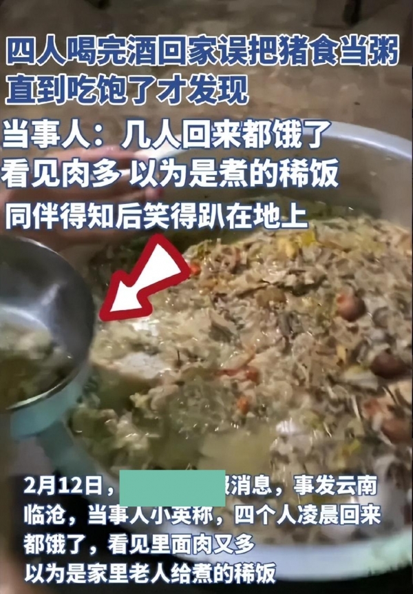 大过年喝醉酒 四人错把猪食当稀饭吃