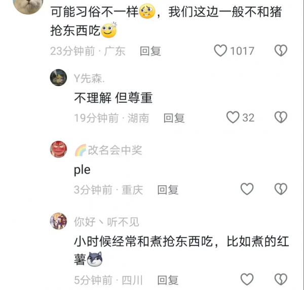你说你4人喝醉就喝醉吧,大过年的回家后还和猪抢食,让二师兄从此在江湖被人耻笑,2024年,工作不努力,吃猪食都没有。听着多虐心。看看网友是怎么说的。