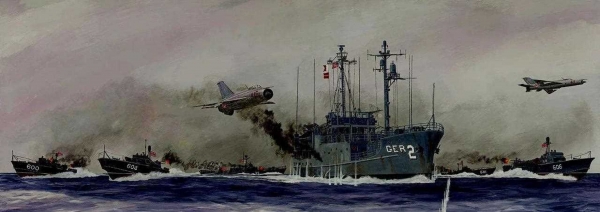 朝方察觉不妙,立即派出5艘猎潜舰快速逼进,并询问道「你们是什么国家的船只?」,接着又发出,「立即停船,否则开火」的要求。