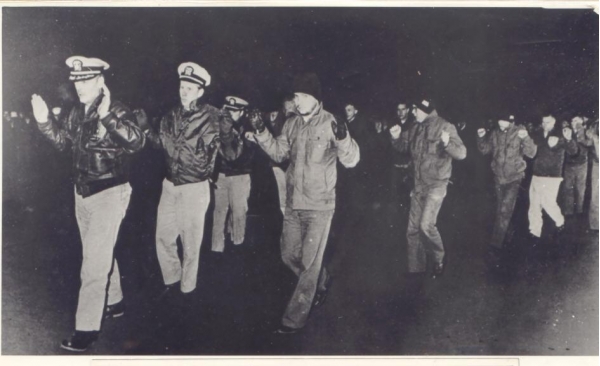 朝鲜兄弟继续一顿操作猛如虎,组织武装人员登上了老美的间谍船,收集了大量价值极大的机密文件,还俘虏了82名美军,并在第一时间拍下了所有被俘美军下船投降的照片,并且发布到了媒体刊物上。