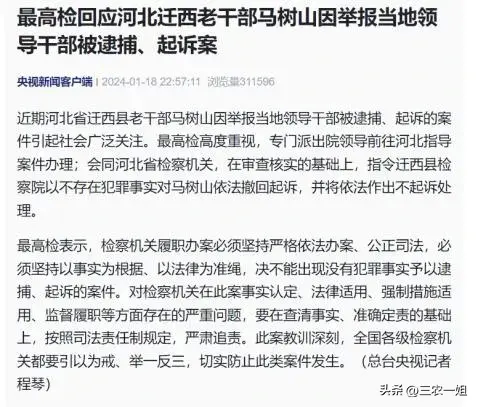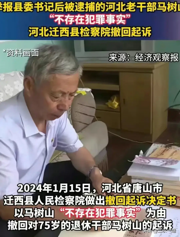最高检定了马树山案件的属性,也就是马树山不存在犯罪的事实,并且下令迁西检察院及时的纠正错误,并且要求严肃追责,绝不姑息!