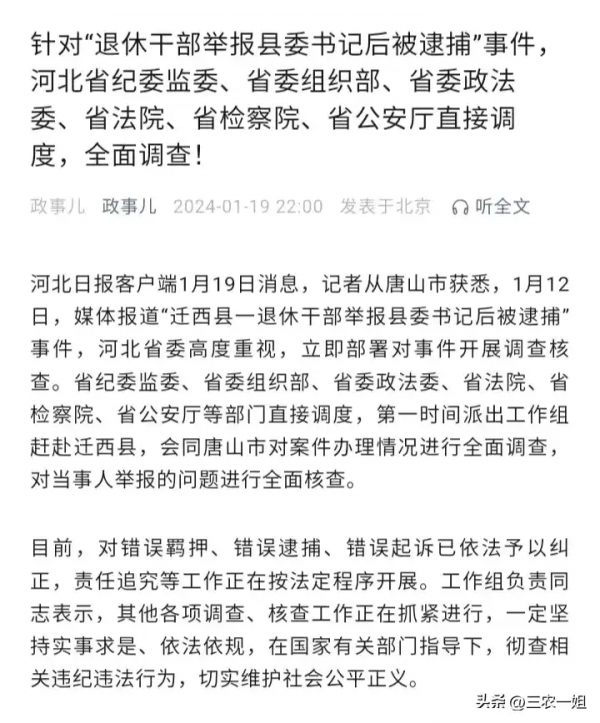 1月19号,在最高检发声之后,河北省委也发出了通报!这一次河北省委确实动真格的了,毕竟已经引起了中央的愤怒,国家也出手调查此事,并派出了专人到达河北省!