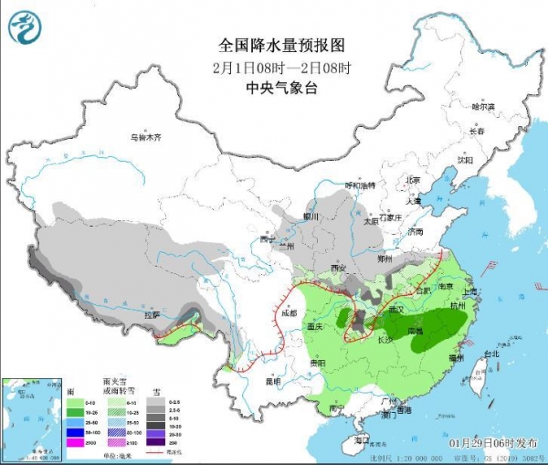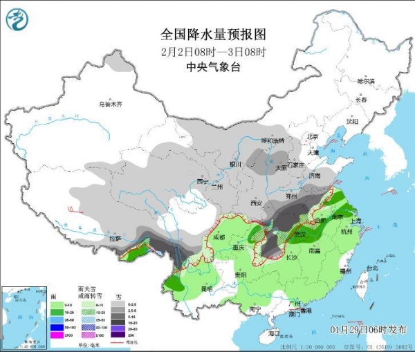 随着冷暖气团之间的激烈较量不断加剧,冷空气势力逐渐增强,雨雪分界线也将向南挺进。到了2月2日,暴风雪将推进到湖北、湖南、河南一线,长江流域的降雪也随之密集起来。