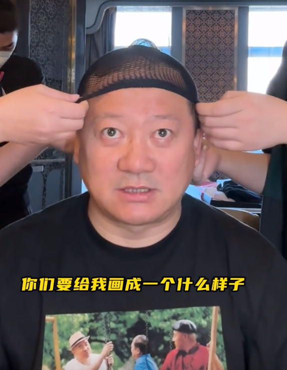 贴了那么久的发网了,现在的妆也化的差不多了,广坤叔终于戴上了他梦寐以求的假发。