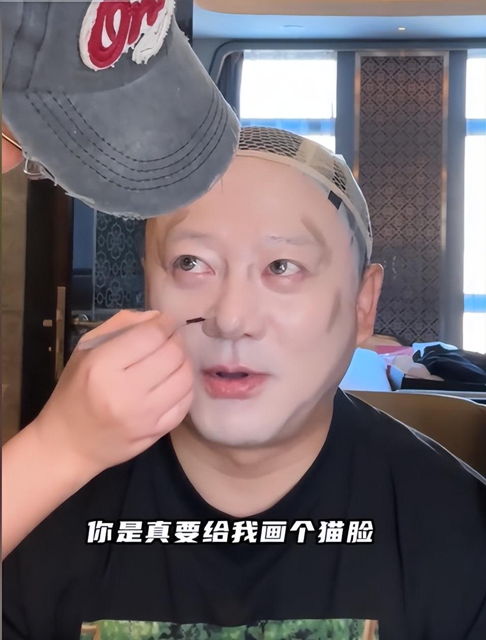接着,化妆师给广坤叔画了一个根根分明的"野生眉",这个时候,广坤叔已经开始变得"眉清目秀"了。