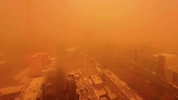 新疆居民称这是记忆中最严重的沙尘暴,空中夹着土和石子!