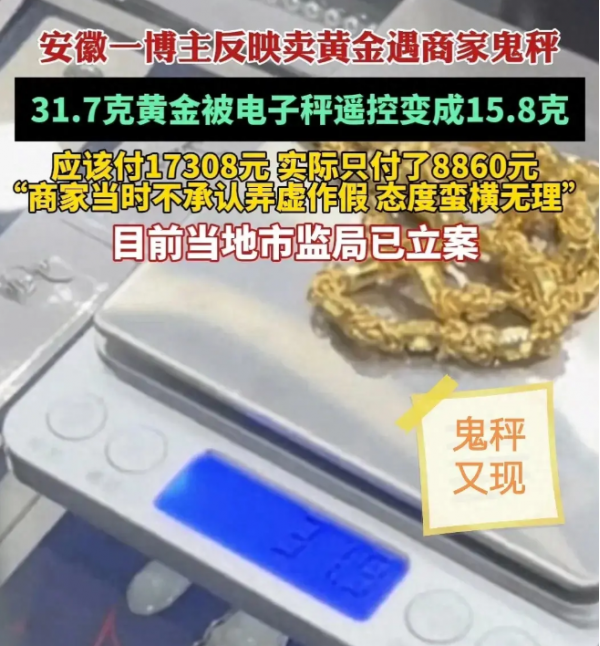 黄金回收店"鬼秤"缺斤短两:克数直接少一半!