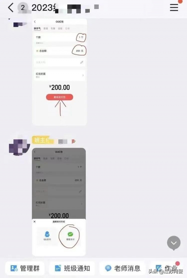 虽然家长们平时并不是通过QQ红包的方式缴费,但是经过"班主任"这样严肃的通知之后,很多家长抱着配合老师工作的心态,很快在群里发了红包。直到有家长觉得情况不对,打电话给真的班主任核实时,大家才发现原来之前收红包的人是骗子!