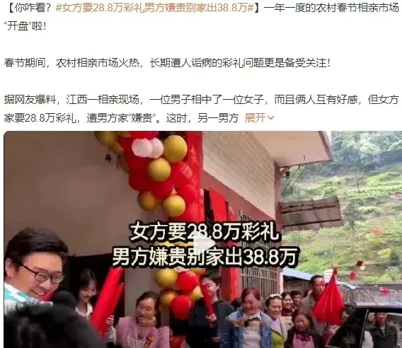 男方嫌弃28.8万彩礼