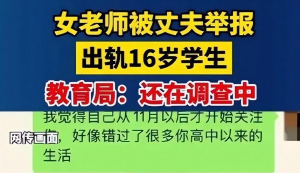 女教师出轨16岁高中生?教育局回应:正在进行深入调查