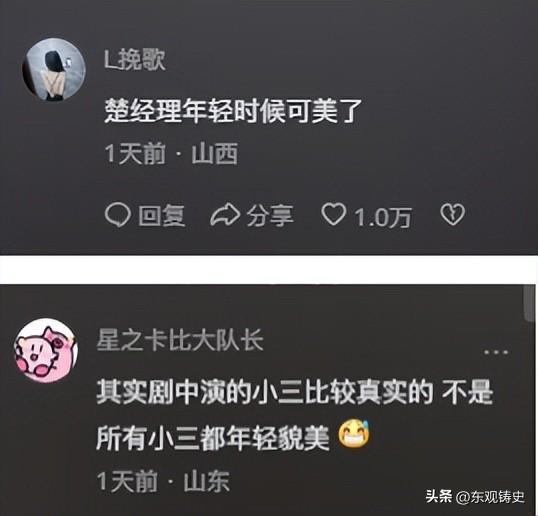 认为王柠饰演的"情妇"很真实,并不是所有的"情妇"都是年奇怪貌美的。更何况楚志娟的饰演者王柠年轻的时候其实很漂亮。