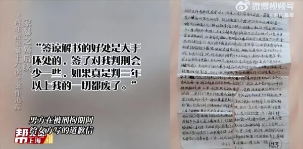 贺某阳觉得若是真的被判三年以上,他的人生就被毁了。他认为这个谅解书,作为妻子的小谢,于情于理都要出。毕竟他知道错了,也写信道过歉了。