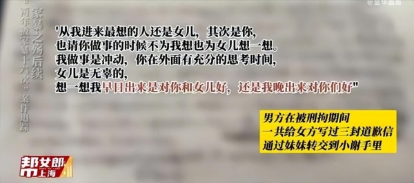 他还写信说:"从我进来最想的人还是女儿,其次是你(小谢),也请你做事的时候不为我想,也为女儿想一想,我做事是冲动,你在外面有充分思考时间,女儿是无辜的。想一想我早日出来,对你和女儿好,还是晚出来对你们好。"