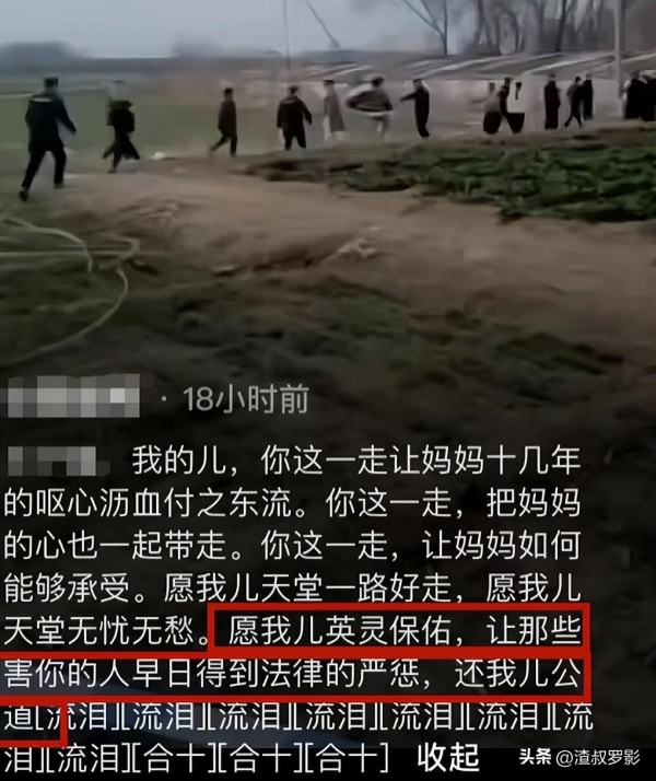 在最后小光的妈妈还说道:"愿我儿英灵保佑,让那些害你的人早日得到法律的严惩,还我儿公道。"