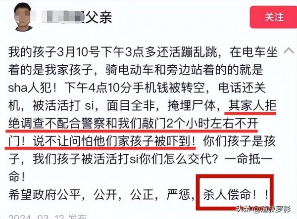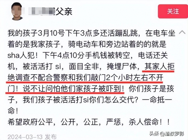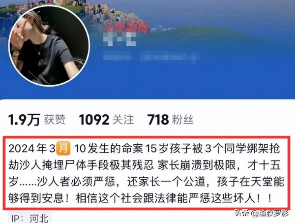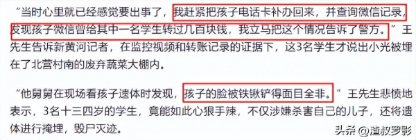 而小光爸爸在社交平台上的发言,最后也是希望能够严惩杀人凶手,这是一对父母为自己去世的孩子,能够进的最后一份心思,有可能正是这份心思和决心,才能苦苦支持着,这对可怜的父母。