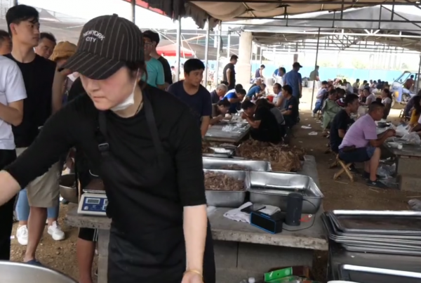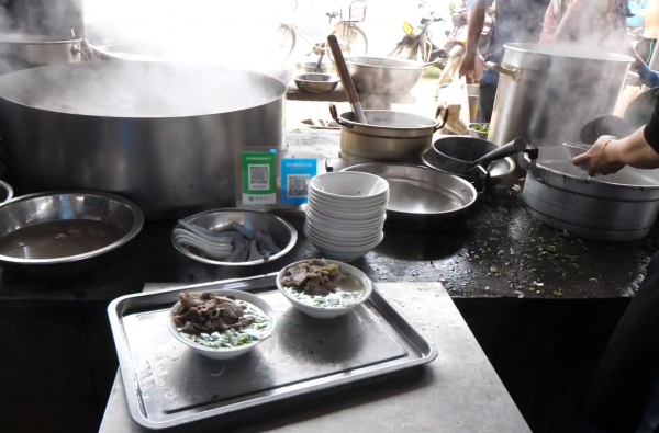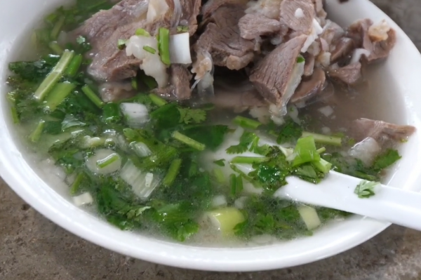 他家的羊肉摊子上从早上6点一直吃到散了集,都不见人少,还有的人赶十几里路,就为了来他上喝一碗羊肉汤,即使那些不进摊子喝羊肉汤的人,路过也会忍不住流口水。
