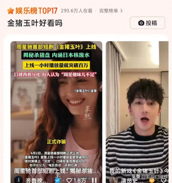 那么这部《金猪玉叶》究竟如何呢?打着周星驰的标签短剧又能否赢得大众的口碑,是割韭菜还是大胆创新、挑战、降维打击的精品呢?