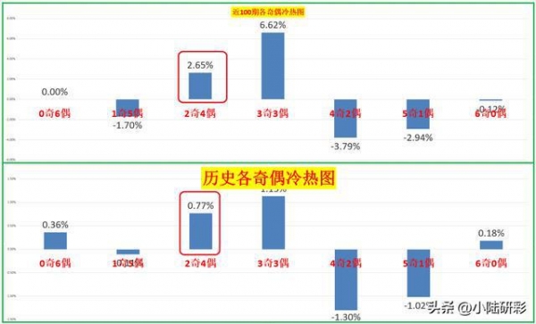 比较让人意外的是,最近开出的奇偶比都是热门类型的。根据历史数据统计显示,当前最冷门的奇偶比为4:2,无论是人短期还是长期来看,该奇偶比都是属于最冷门的。在后续的开奖中,该奇偶比有可能会出现持续回补的现象。