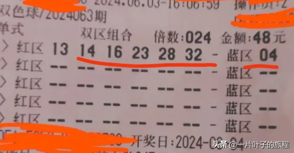 首先展示出来的是一张单式倍投票,单票面额48元、经24倍投注、1注号码的单式票,此票出自于广东的站点,尽管该票并没有击中头奖,但也并不是一无所获,此票经过小编仔细核对之后,发现红球命中了5个开奖号码,而蓝区的号码04也命中,所以整体命中了5+1,直接揽下了三等奖。