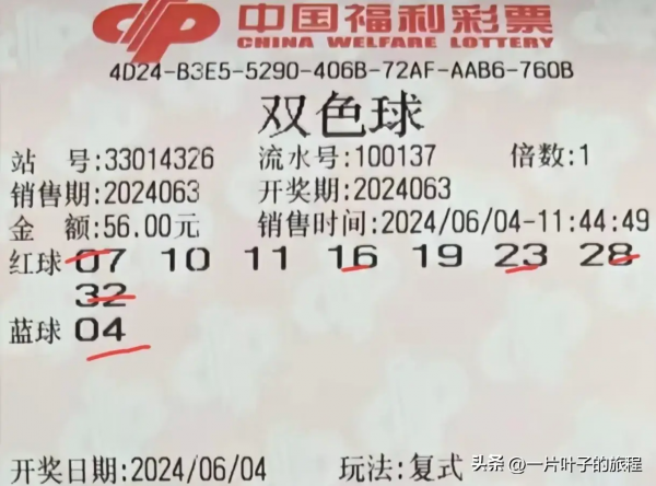 中奖号码为:07 14 16 23 28 32 - 04