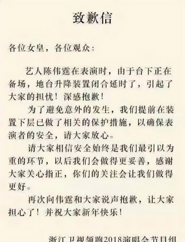在跨年晚会上,因为舞台设备有问题,直接掉进黑洞里的陈伟霆。