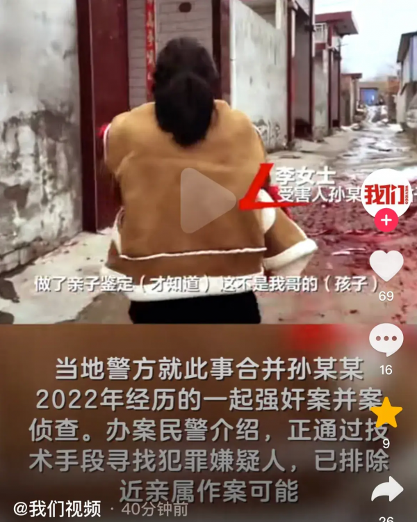 2024年1月19日,河南巩义市夹津口镇某村44岁智力残疾女子孙某某在家中突然分娩产下一女婴,而女婴的生父身份成谜至今没有任何线索。