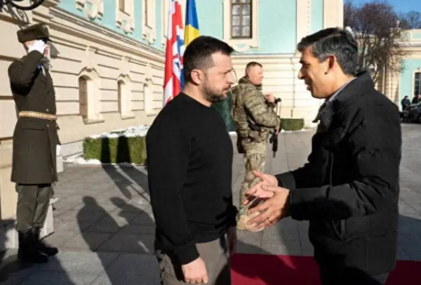 而更早之前的1月12日,英国首相苏纳克曾抵达乌克兰首都基辅开始访问,并与乌总统泽连斯基举行会谈。会见期间,双方领导人签署了乌克兰与英国的安全协议。苏纳克在基辅表示,英国将在下一财年向乌克兰提供25亿英镑的军事援助,该军事援助中,至少有2亿英镑将用于采购和生产数千架军用无人机,包括监视、远程打击和海上无人机。