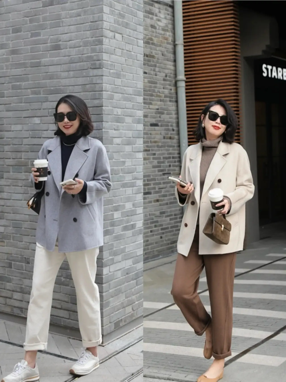 像很多中年女人身材有些发福,都不太适合穿过于修身的衣服,但是也不太适合穿过度宽松的服装,容易显得臃肿,这种大衣就是值得入手的,气场十足。