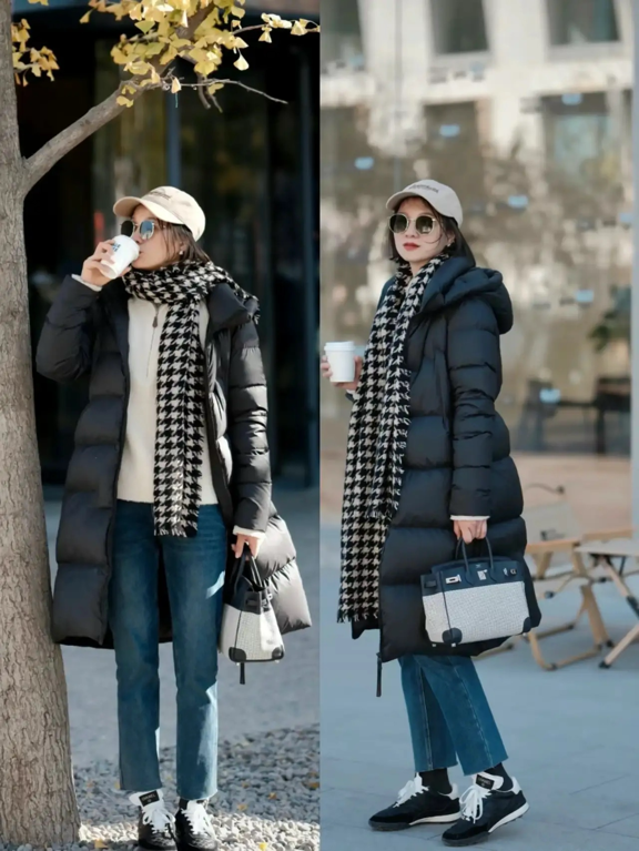 羽绒服其实也能穿的时髦,如果你觉得你的羽绒服搭配太单调,而且很沉闷的话,那么你也可以来尝试一下这种戴帽子和围巾的方式去点缀你的穿搭。