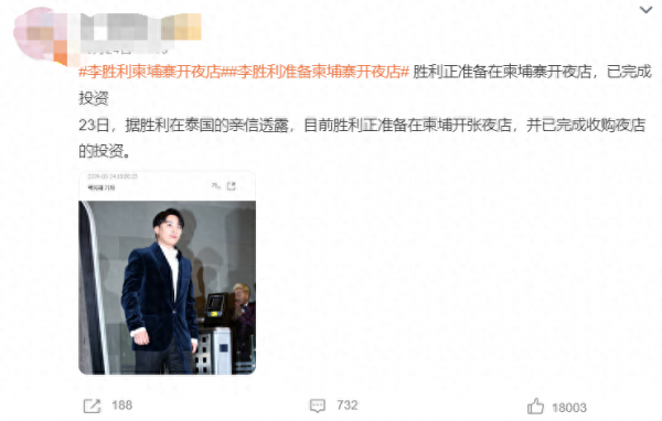 四处蹦跶的李胜利传出新消息,准备在柬埔寨开酒吧,已经完成投资等待营业,消息传出迅速被围攻,骂上热搜。