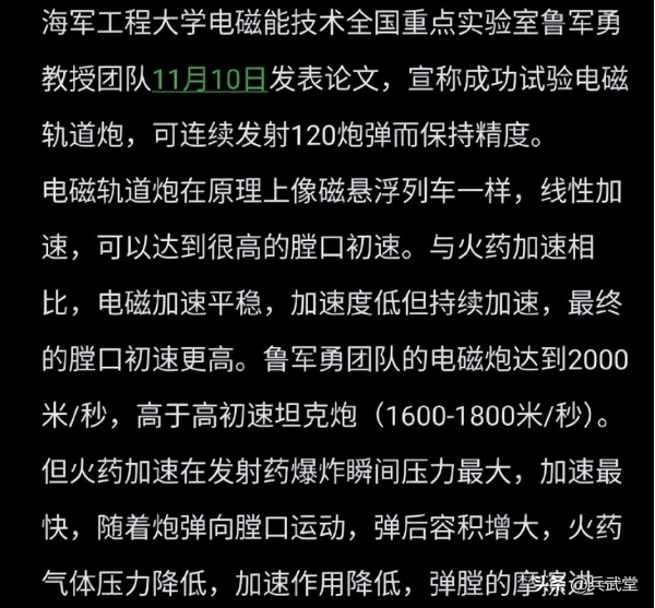 中国军工传好消息!电磁炮连发120枚保持高精度