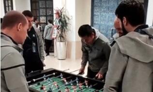 亚洲杯期间,马宁在酒店和国外裁判组队玩桌式足球