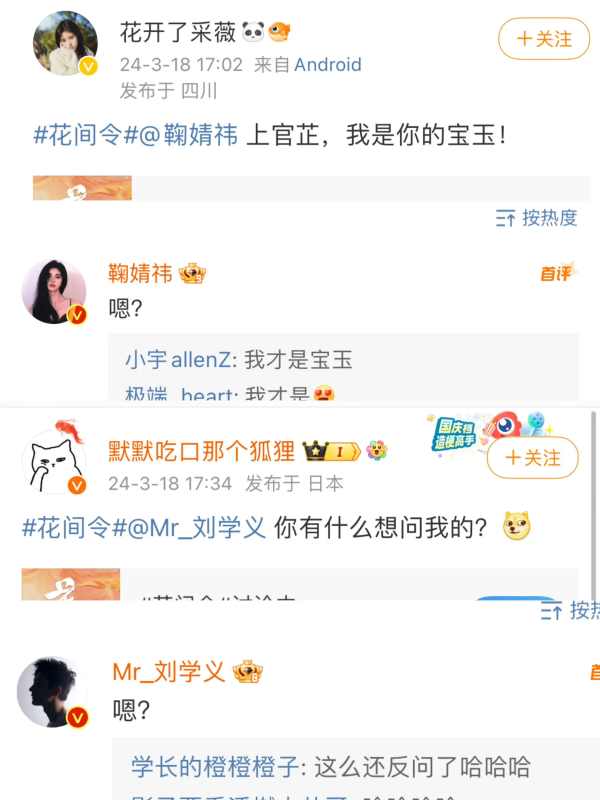 再说,其中两对都和《花间令》相关,说是剧集宣传的安排也不为过。