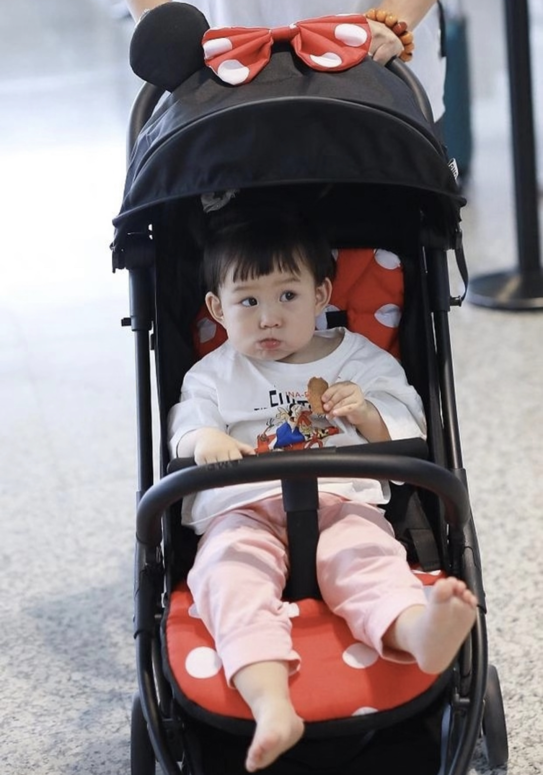 一岁时,她跟着爸妈亮相机场,看着可爱俏皮,