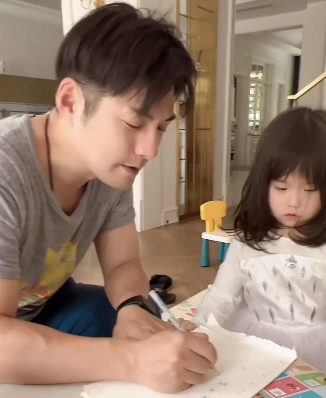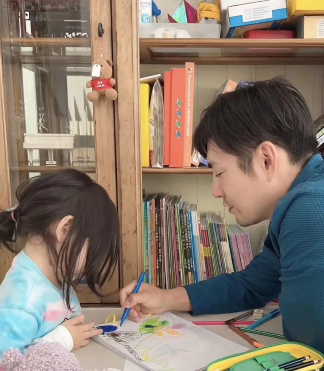 陪着女儿画画、