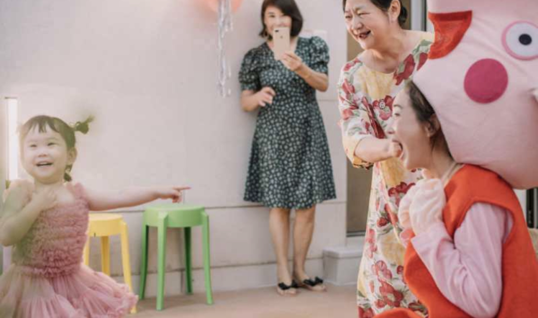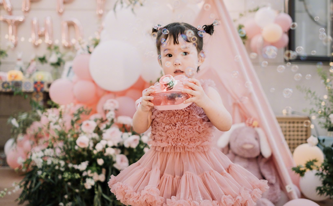 两岁时,肉肉穿上粉色纱裙参加生日party,
