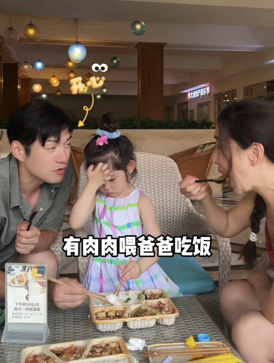 在肉肉五岁的生日party上,一家三口非常开心,