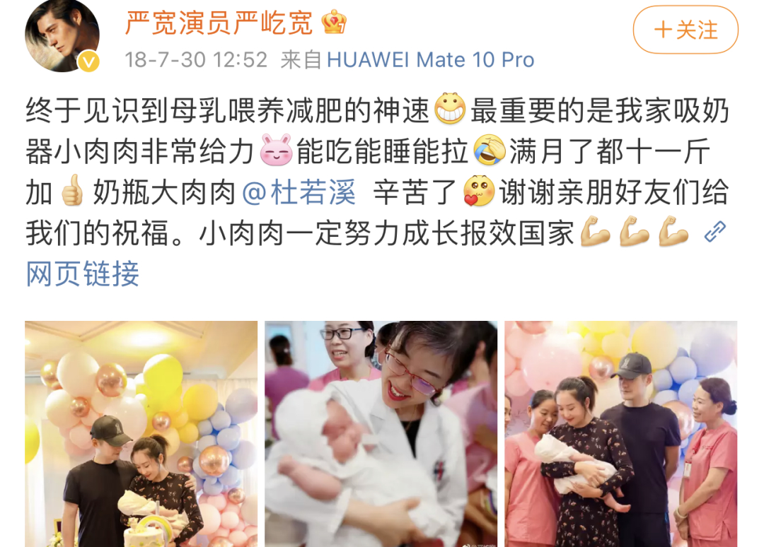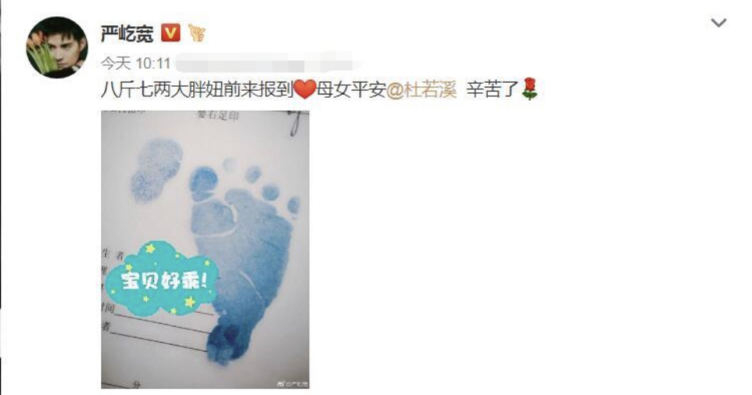 满月宴这天,严屹宽发文表示: