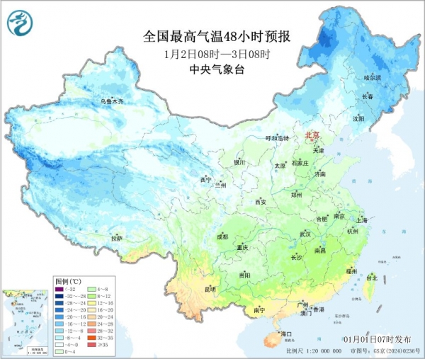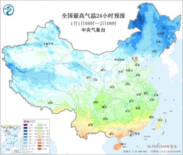 预计今晚8时至1月2日20时:全省多云到晴。全省大部分地区有冰冻。全省偏北风,东部地区4-5级阵风6级,其他地区4级左右。