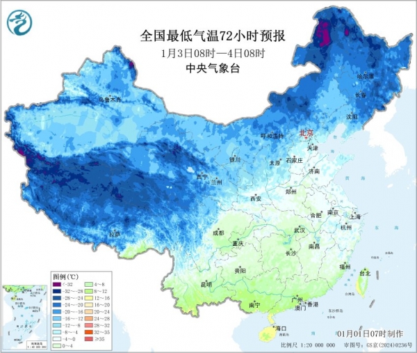 1月2日20时至1月3日20时:全省晴到多云。全省有冰冻。全省偏西风3-4级。
