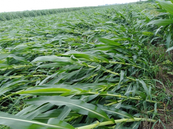 玉米、高粱这些高秆作物首当其冲,大风一吹就成片倒伏,茎秆折断后,养分送不到籽粒里,就算没倒也会滋生病虫害。