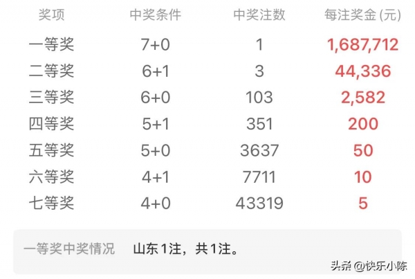 从开奖数据来看,本期全国七乐彩销售额保持稳定,当期计提奖金为销售总额的49%,其中低奖等(四至七等奖)采用固定设奖:四等奖单注200元、五等奖50元、六等奖10元、七等奖5元。除苏州的头奖外,全国共中出3注二等奖,单注奖金44336元,每注奖金为当期高奖等奖金的10%;三等奖及以下中小奖项全面开花,仅七等奖就为数万彩民带来小确幸,充分体现了"小奖多中"的玩法特点。