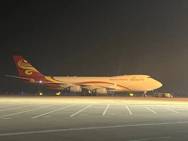 1月5日21时30分,运载106吨电子产品、生物医药及化工品等货物的Y87920航班,从南京禄口国际机场飞往美国洛杉矶。该航线由金鹏航空运营,采用波音747或777全货机执飞,每周2班。