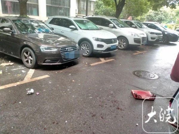 "东西是从11楼(复式楼)住户家扔下来,把楼下停车位上一辆奥迪车顶砸了个洞,碎片还把停车位上一个男子的头砸伤。"5月26日中午,在合肥清溪路翠竹园(B区)发生惊险一幕。