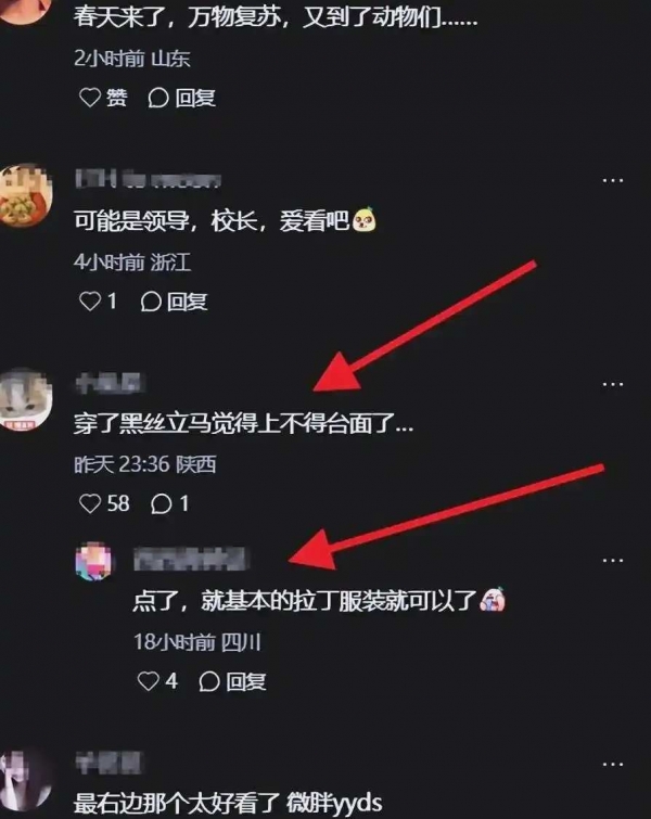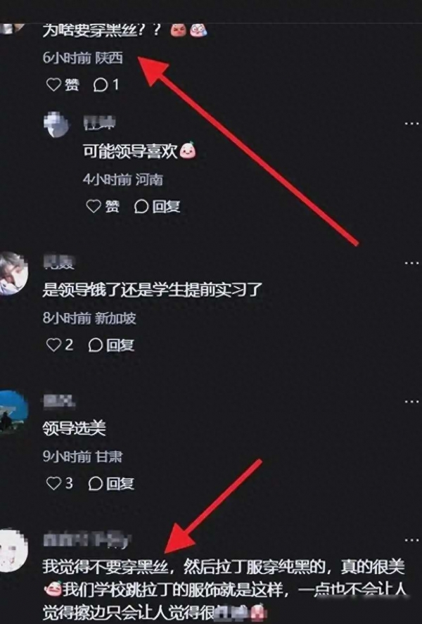 其实大家不反对露腿或跳舞这件事,拉丁舞本来就穿贴身短裙,没人觉得奇怪,问题出在黑丝袜配上颜色太鲜艳的紫裙子,这种组合看起来很像夜店或者按摩店的打扮,学生在学校跳这个,让人感觉有点不合适,有人觉得这是个人审美自由,也有人认为学生不该这样穿,两边争论得挺厉害,但都没说到真正的问题上。