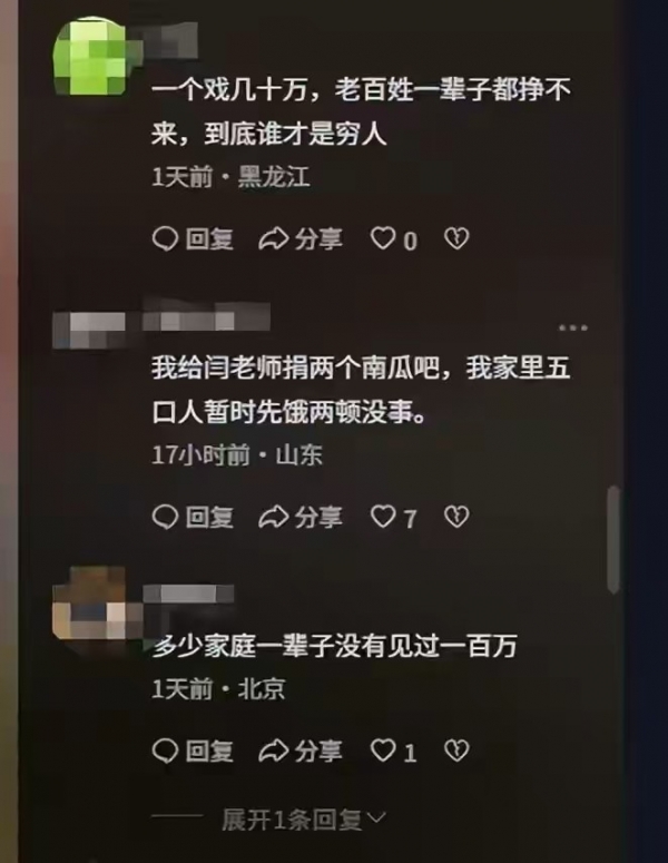 "我们普通人一年挣几万都能过,她家几十万还喊穷,真是站着说话不腰疼"。