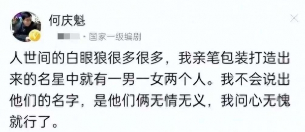 这事让何庆魁憋了一肚子火,之前还在公开场合吐槽过圈内有白眼狼,虽然没指名道姓,但其儿子出来锤过是闫某某。